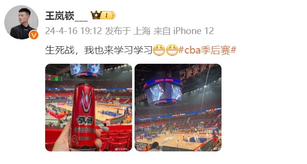 此役,同曦后卫、原清华大学球员王岚嵚现场观战,并发博写道:“生死战,我也来学习学习。”
