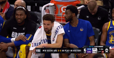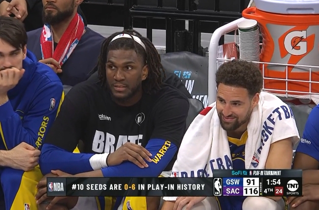 勇士换下主力宣布投降 库里等人表情严峻 克莱面带微笑
