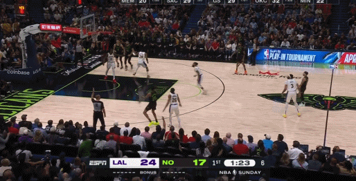 在比赛第一节1分40秒时,南斯抢篮板时对普林斯犯规,这是鹈鹕在首节最后两分钟里的第二次犯规,普林斯应该获得两罚,但是技术台搞错了,使得湖人只是获得了界外球;
