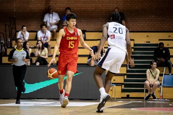 去年夏天的U19世界杯,杨瀚森贡献了一场又一场的高光表演。小组赛首场,他7中6拿下全队最高的14分外加6篮板3助攻3盖帽,把法国中锋亚历山德列-萨尔打得满头包。