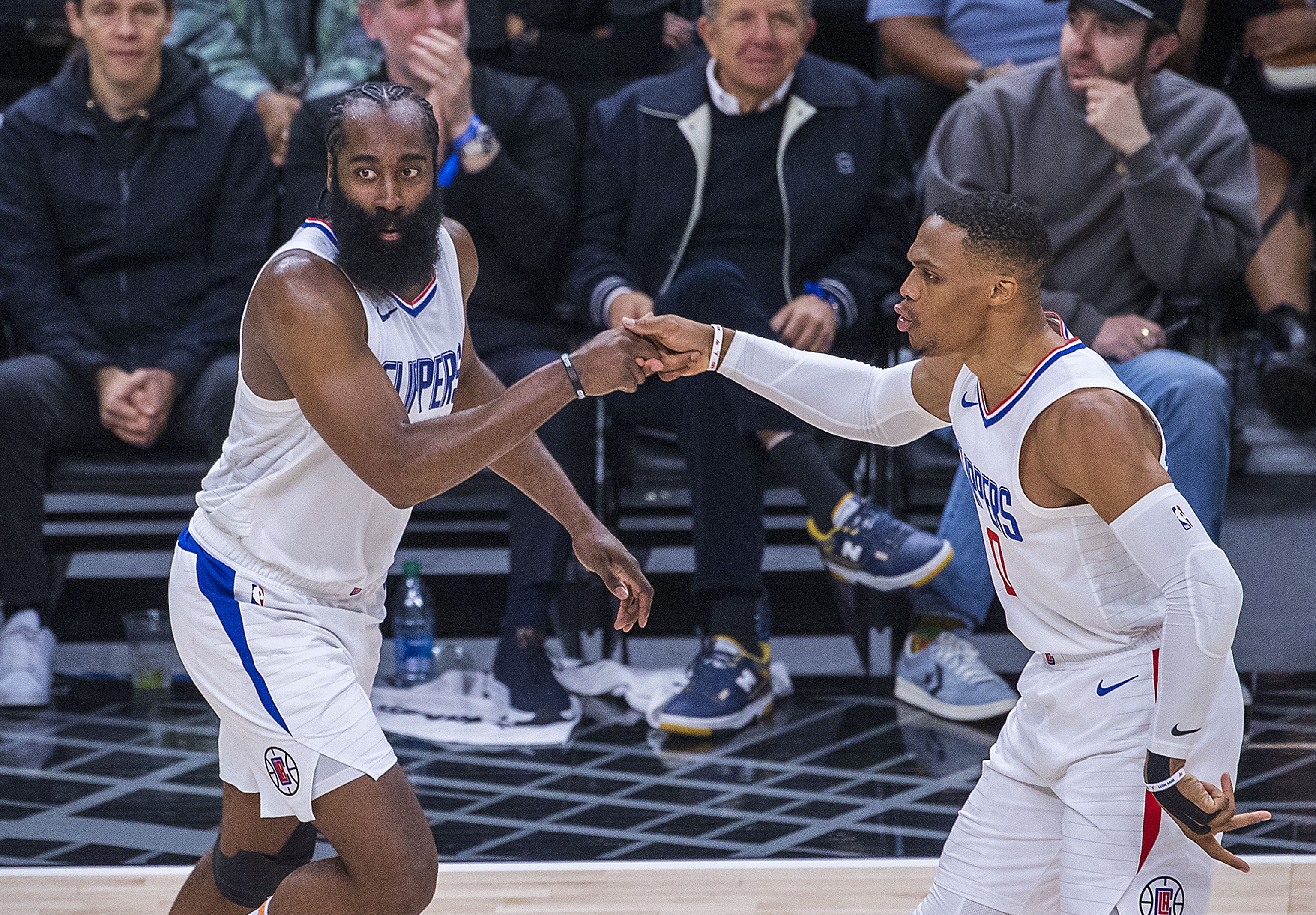 35岁的威少再一次做出牺牲,主动让步出任替补,促成了快船北伐。34岁的哈登则彻底转型控卫,场均出手11.4次是自2011-12赛季以来的个人最低。