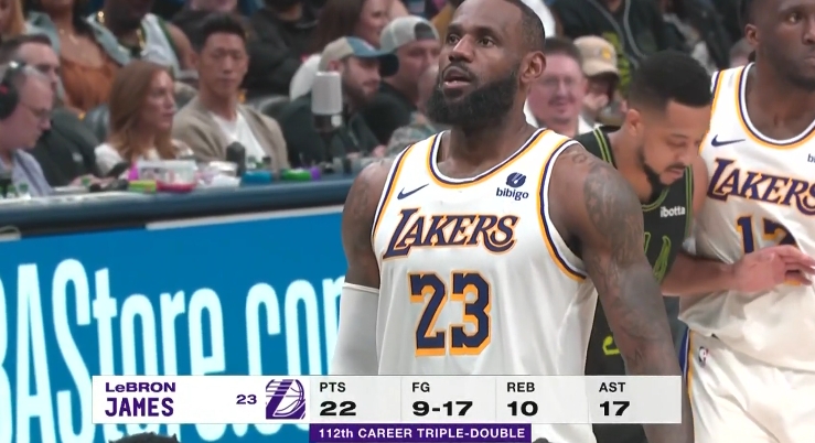 比赛第四节未过半,詹姆斯就已达成三双数据。全场比赛詹姆斯出战38分钟,20中11,三分2中0,6罚全中砍下28分11板17助(赛季新高)5断1帽的数据。这是詹姆斯赛季第五次,生涯第112次砍下三双。
