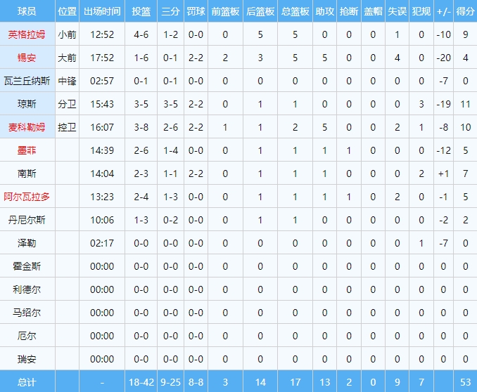 手感冰凉!小哈达威半场9中1拿到三分 正负值-32最低