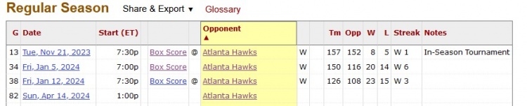 据统计,本赛季步行者4次面对老鹰,2次打出赛季最高的157分,1次150分,得分最少的一次也有126分。