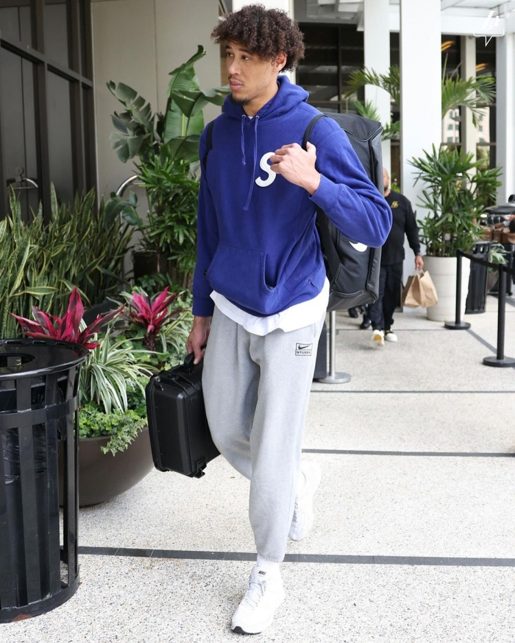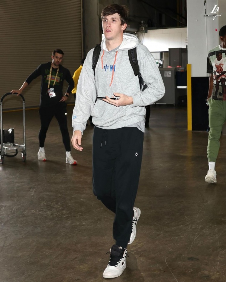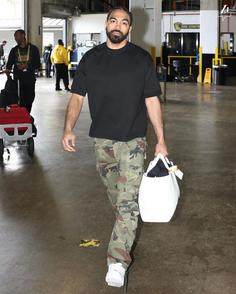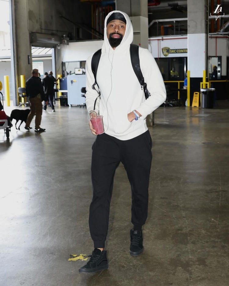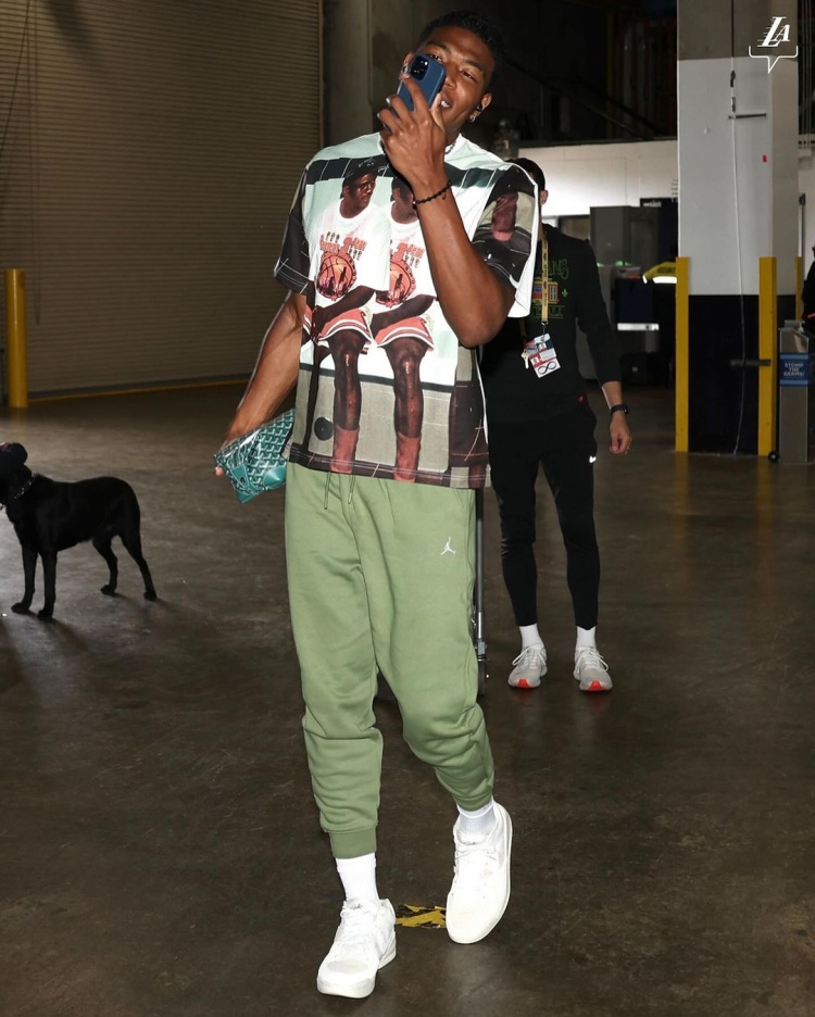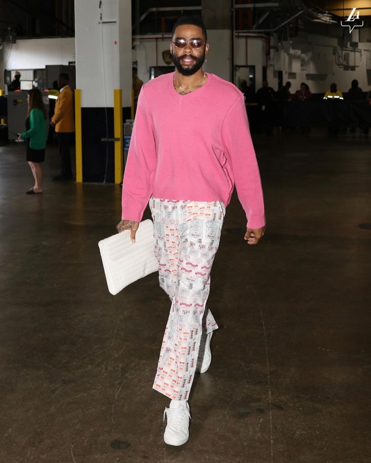 湖人众将今日穿搭:詹眉黑卫衣低调 里夫斯良心带盐 拉塞尔粉嫩