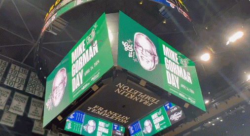 本场比赛还有另一个特别意义,绿军著名解说迈克-戈尔曼将在本场过后正式隐退,结束自己长达43年的解说生涯。现场大屏幕和座位上的元素都在致敬这位老解说。