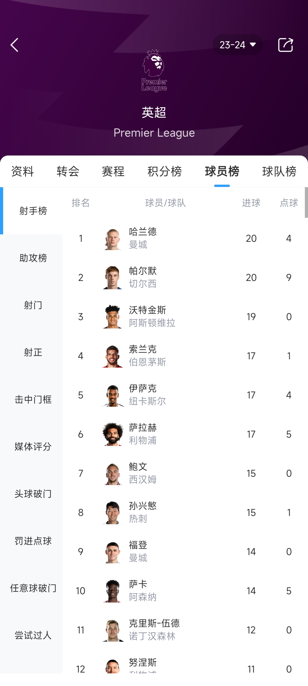 但除了哈兰德与帕尔默之外,射手榜第3的沃特金斯同样不容忽视。哈兰德本赛季英超打进4粒点球,帕尔默打进9粒点球,而沃特金斯的19个进球全部是运动战进球!