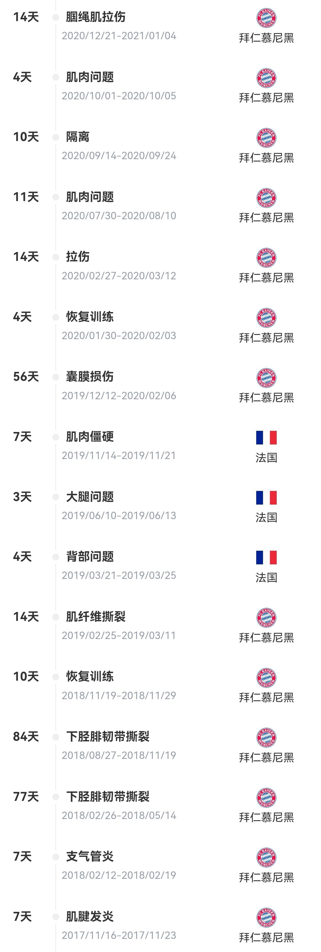 科曼长长的伤病史↓