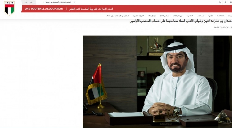 阿联酋足协主席说道:“迪拜国民和阿尔艾因没有遵守承诺,放行俱乐部球员与国奥队汇合,而其他的俱乐部却都主动支持国奥队,放行球员参赛,尽管赛季进行中他们也需要这些球员。”