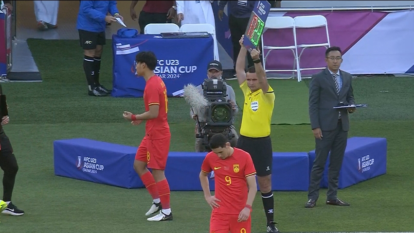 下半场比赛开始前,国奥做出换人调整,谢文能、杜月徵登场 换下刘俊贤、艾菲尔丁。