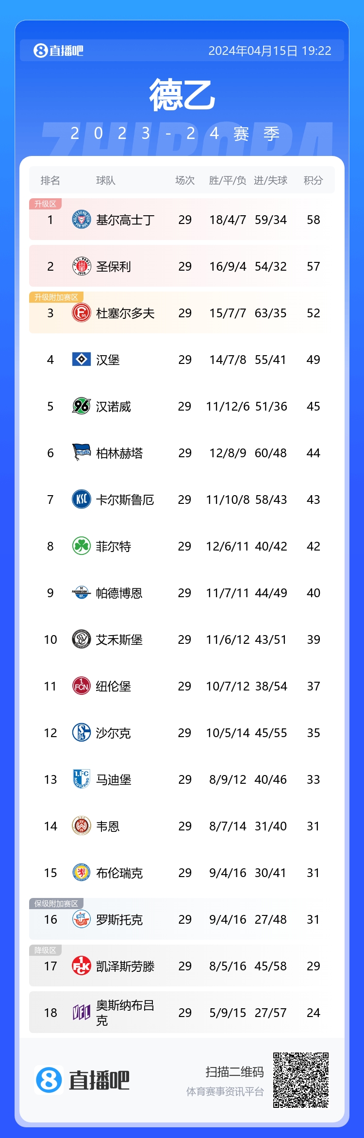 04月15日讯 德乙第29轮,汉堡客场2-2战平马迪堡,联赛积49分,排名第4。