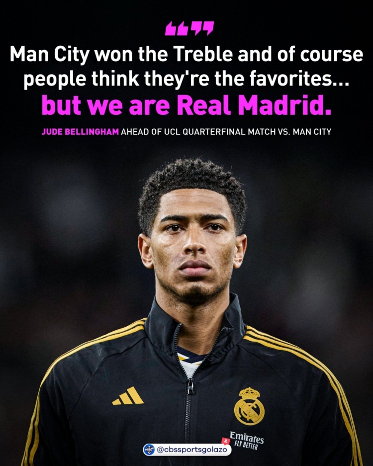 赛前,贝林厄姆谈到冠军热门的话题,他表示:“曼城赢得了三冠王,人们当然会认为他们是最大热门……但我们是皇家马德里,我们有信心。”