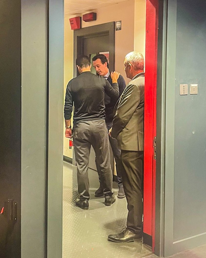 讨教讨教?阿尔特塔赛后和埃梅里在走廊亲切交流