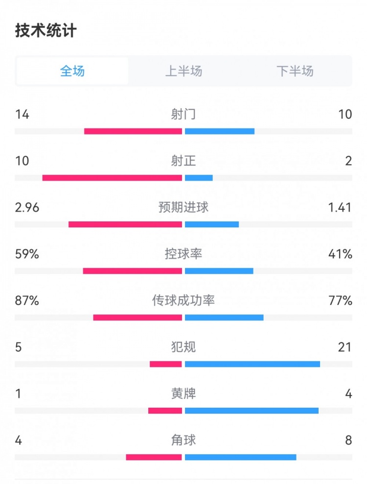 4月16日讯 本轮英超,切尔西主场6-0埃弗顿。双方全场重点数据对比如下↓