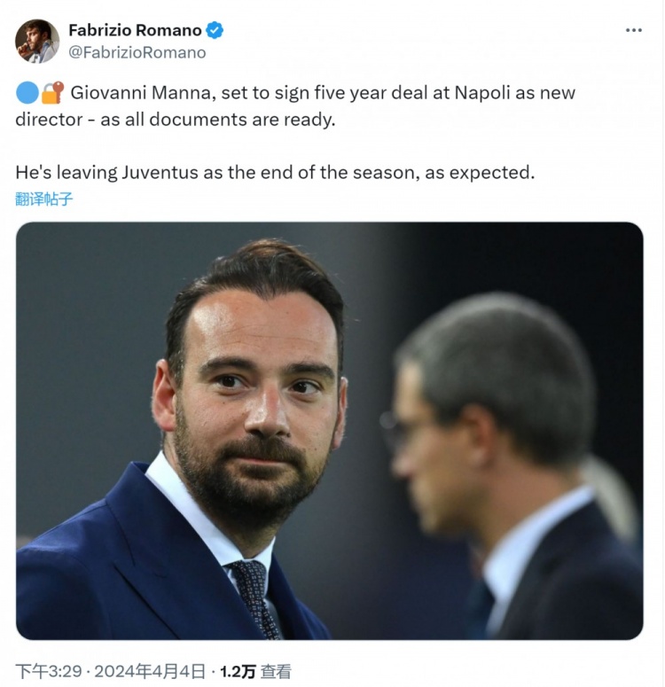 相关新闻:罗马诺:尤文U23总监曼纳将与那不勒斯签约5年,所有文件准备就绪