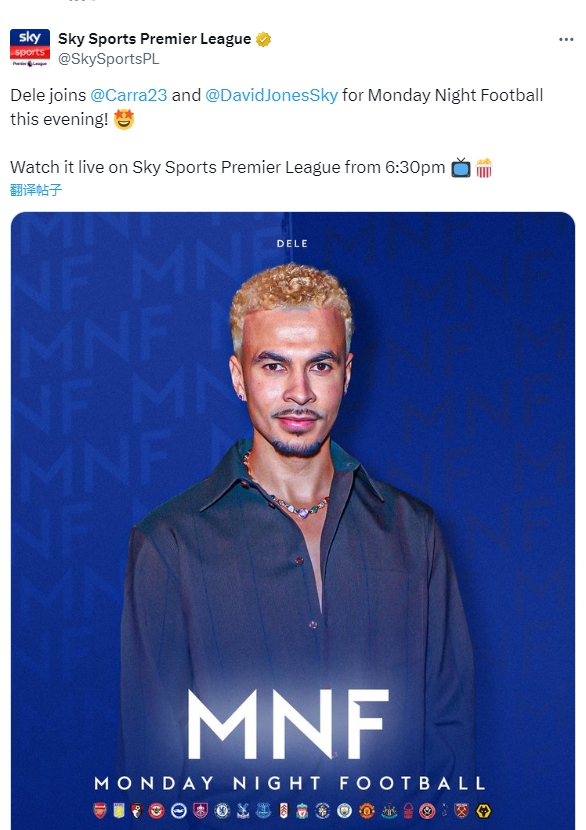 04月15日讯 北京时间4月16日03:00,英超第33轮,切尔西vs埃弗顿。赛前天空体育在社媒发布预告,前热刺球员阿里将在今晚和卡拉格与琼斯共同解说这场比赛。