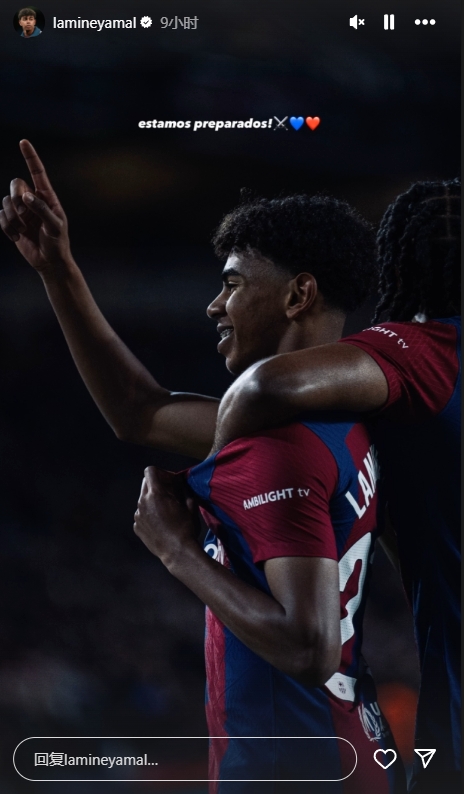 今天,亚马尔在Instagram晒出了自己的赛场照,并配文:“我们已经准备好了!”